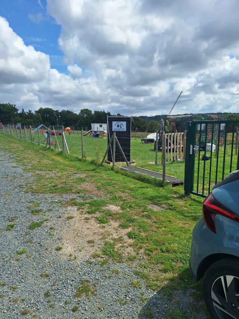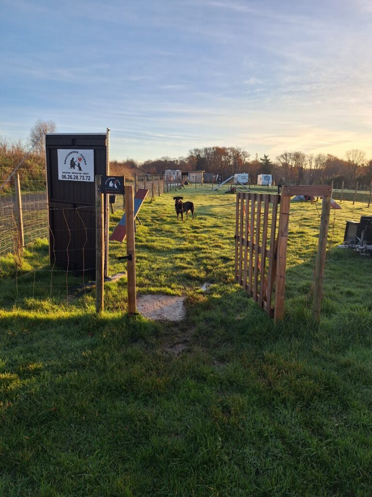 - Un terrain principal : Muni d’un portail d’entrée équipé d’un verrou de sécurité verrouillable de l’intérieur qui donne sur un sas interdisant l’accès à la partie travail. Dans cette première partie (le sas) se trouve un bureau d’accueil. Vos chiens y sont admis sous conditions spécifiques expliquées au cas par cas. Un second portail avec fermeture automatique (système anti-fugue) donne accès à la partie travail. Cette partie est STRICTEMENT INTERDITE AU PUBLIC SANS Y ETRE INVITE.