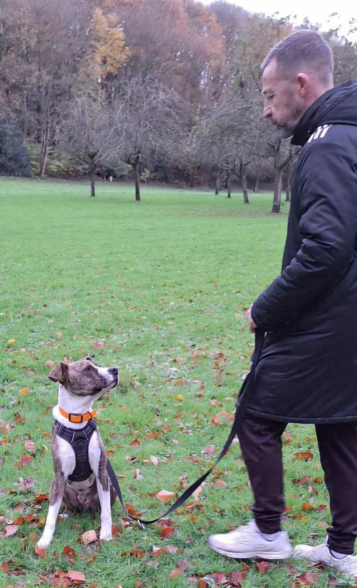 Nous avons fait appel à Lionel suite à l’adoption d’Alpha. Chien réactif congénères et qui ne connaissait pas les codes canins. Grâce à sa patience et à ses leçons tant individuelles que collectives et aux cours d agility, notre loulou a fait beaucoup de progrès. Nous ajoutons de temps en temps une balade éducative pour reprendre quelques conseils toujours bienveillants pour lui et pour nous ! Grâce à lui, nous avons pu adopter notre Nhandy femelle retraitée d’élevage. Pas mal pour un chien réactif ! Nous vous remercions tous les 4 pour cette harmonie que vous nous avez apporté